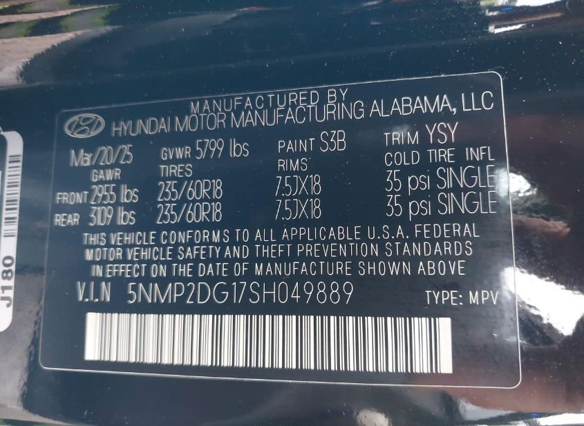 - VIN: 5NMP2DG17SH049889