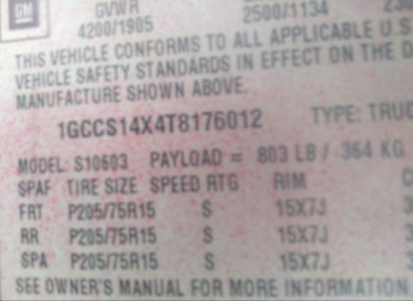 - VIN: 1GCCS14X4T8176012