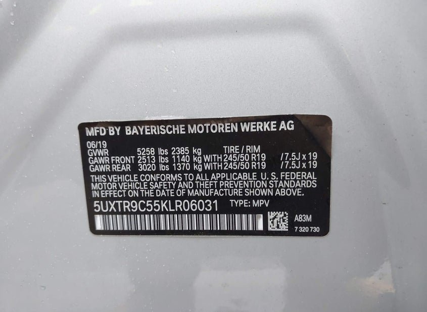 - VIN: 5UXTR9C55KLR06031