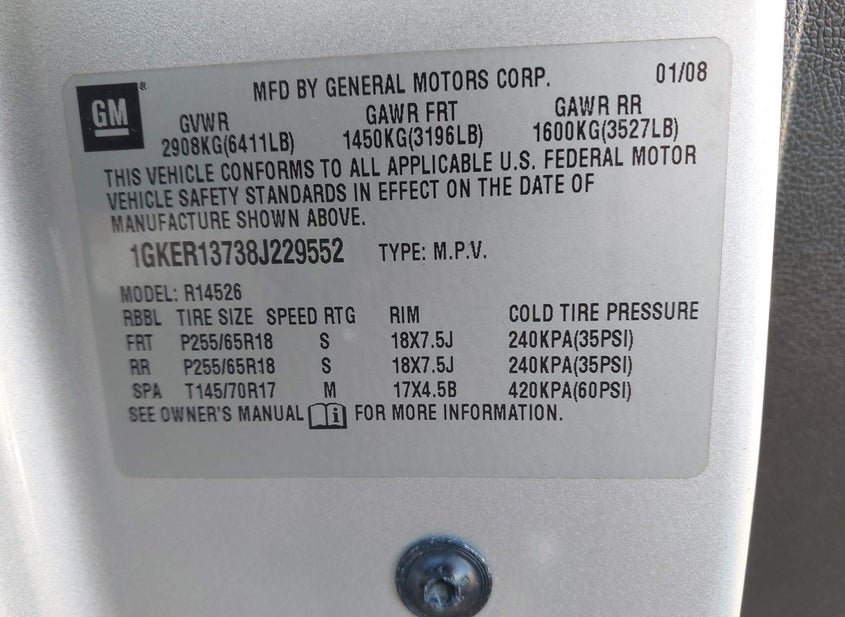 - VIN: 1GKER13738J229552