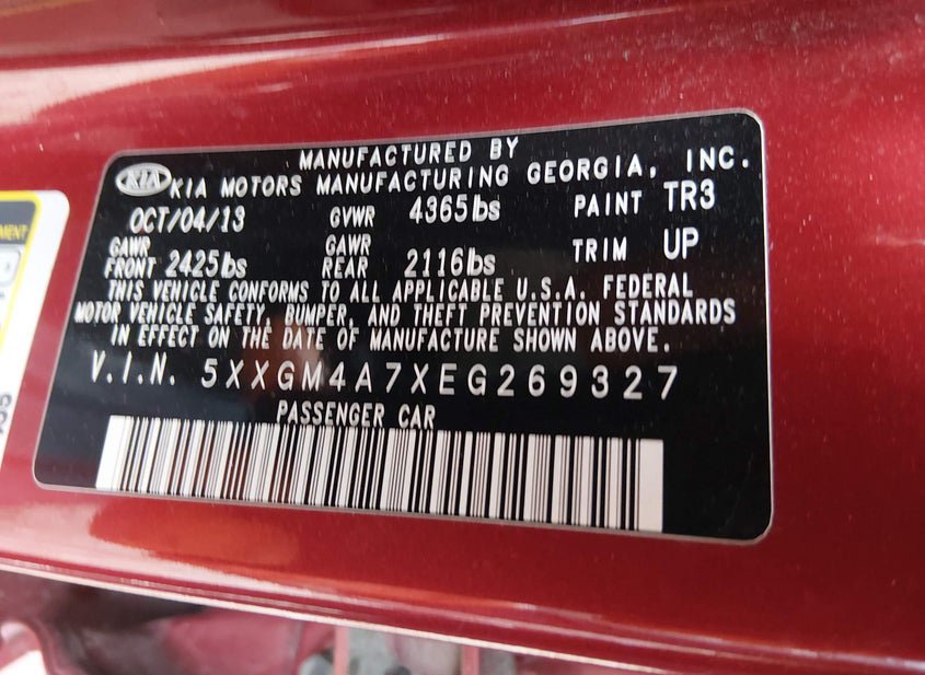 - VIN: 5XXGM4A7XEG269327