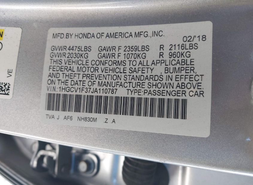- VIN: 1HGCV1F37JA110787