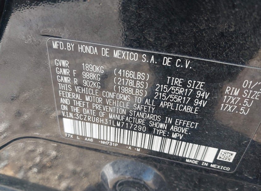 - VIN: 3CZRU6H31LM717290