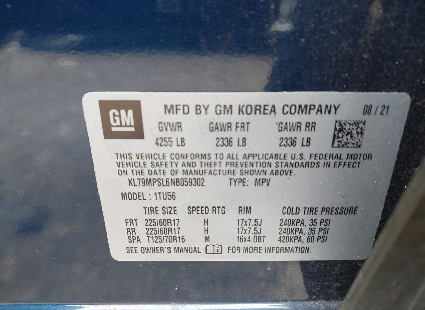 - VIN: KL79MPSL6NB059302