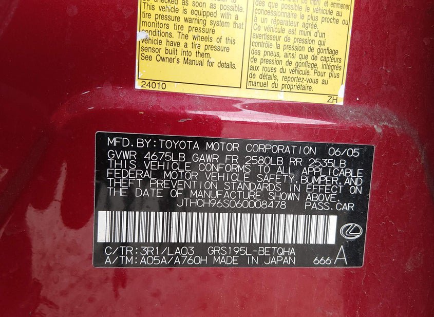 - VIN: JTHCH96S060008478