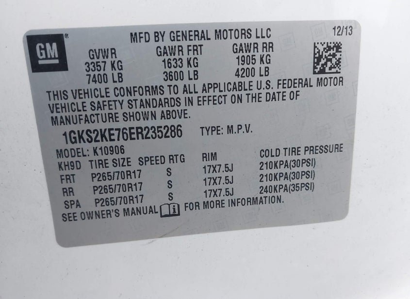 - VIN: 1GKS2KE76ER235286