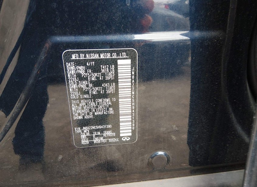 - VIN: JN8AZ2NC5H9431390