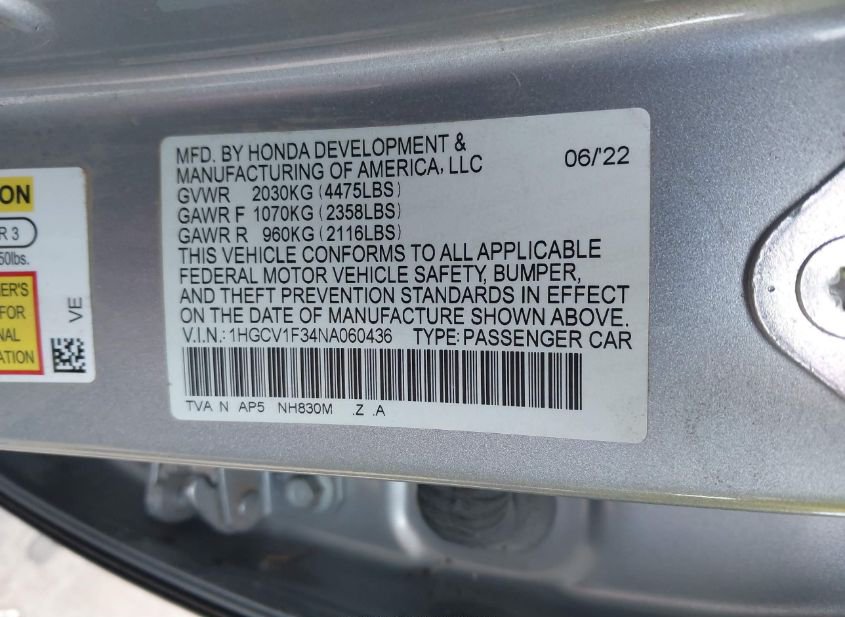 - VIN: 1HGCV1F34NA060436