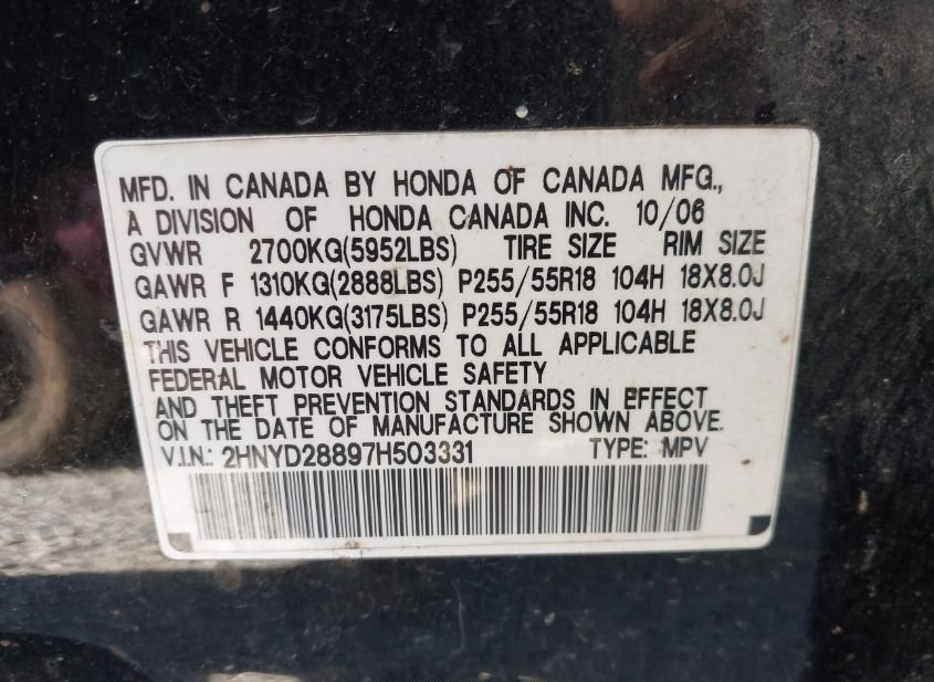 - VIN: 2HNYD28897H503331