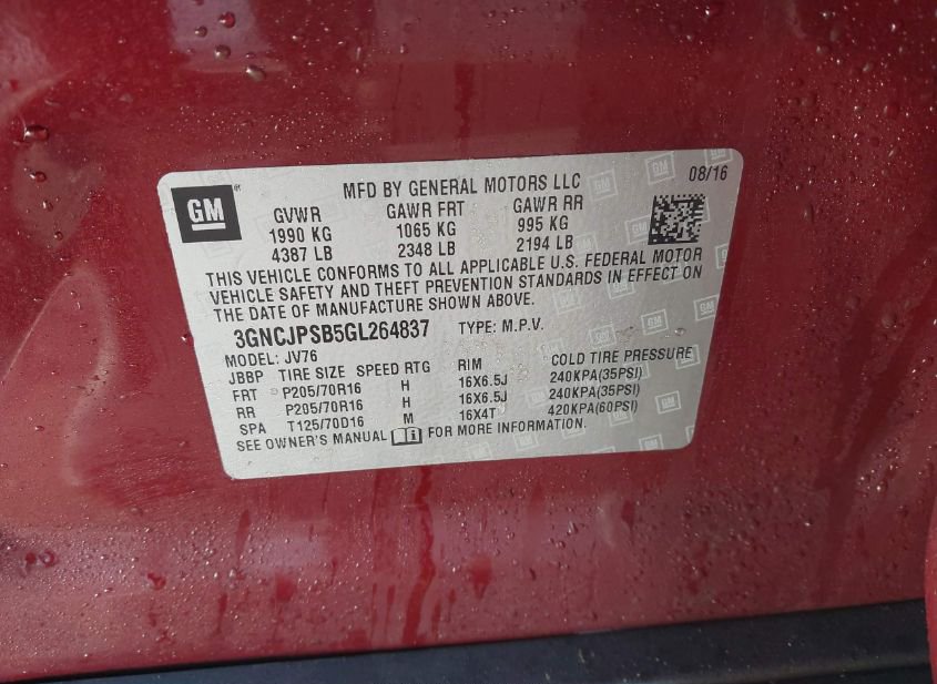 2016 CHEVROLET TRAX LT
