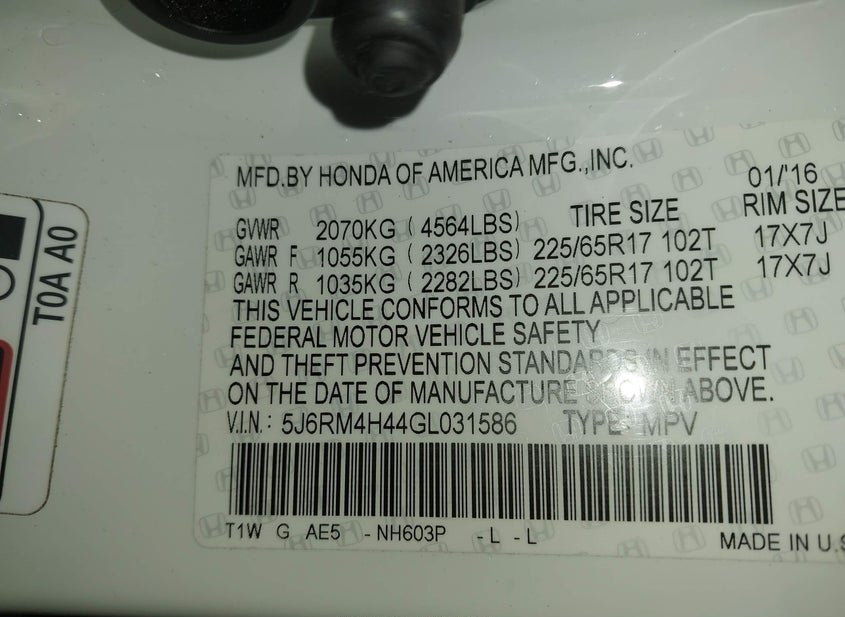 - VIN: 5J6RM4H44GL031586