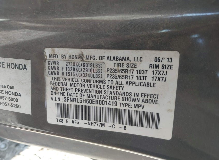 - VIN: 5FNRL5H60EB001419