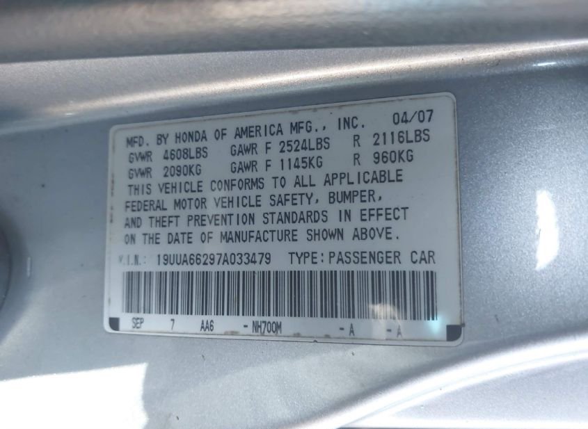 - VIN: 19UUA66297A033479
