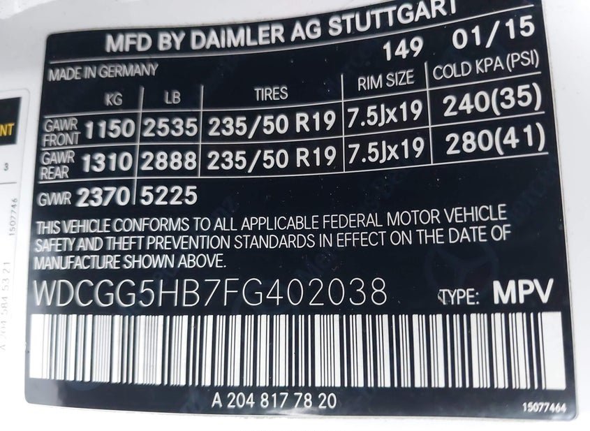 - VIN: WDCGG5HB7FG402038