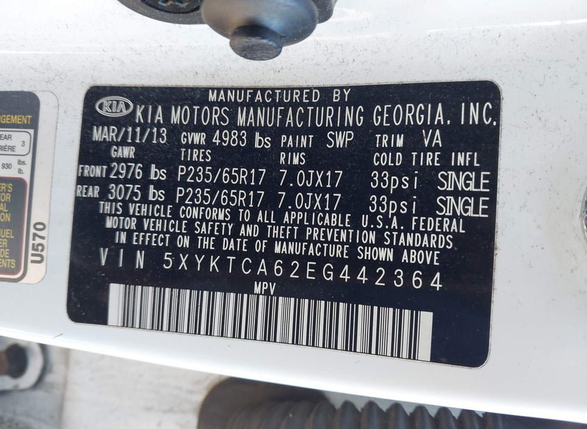 - Название лота: 2014 KIA SORENTO LX