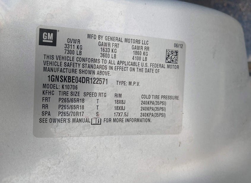 - VIN: 1GNSKBE04DR122571