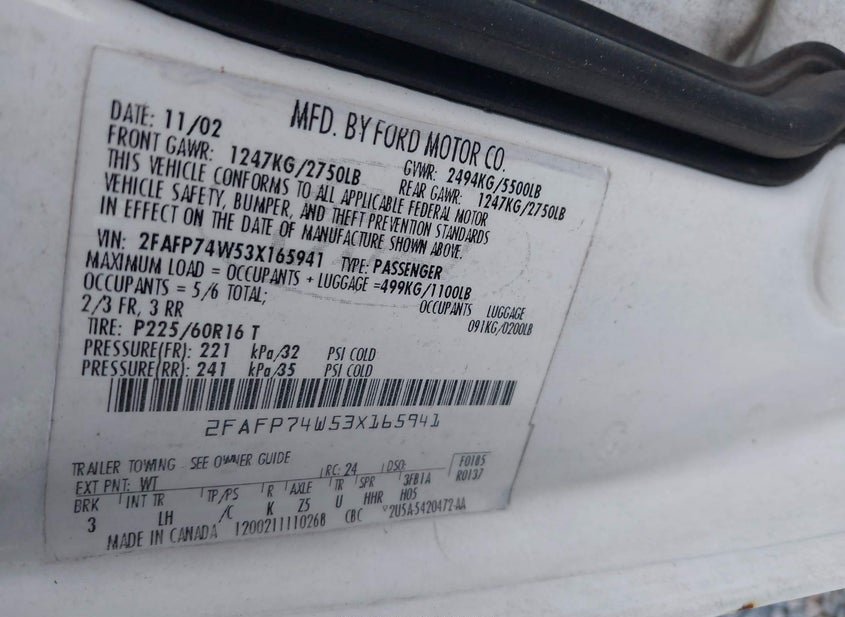 - VIN: 2FAFP74W53X165941