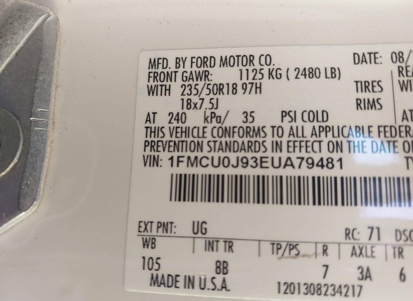 - VIN: 1FMCU0J93EUA79481