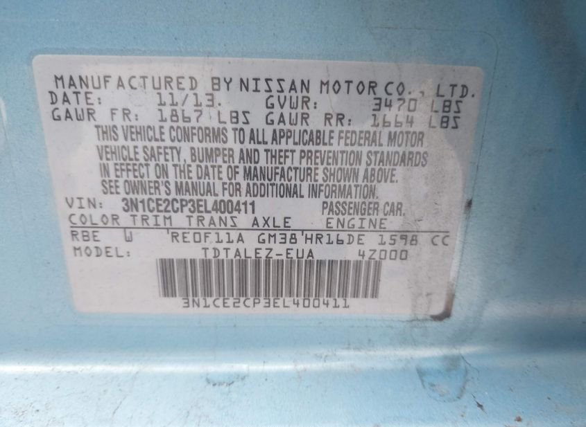 - VIN: 3N1CE2CP3EL400411
