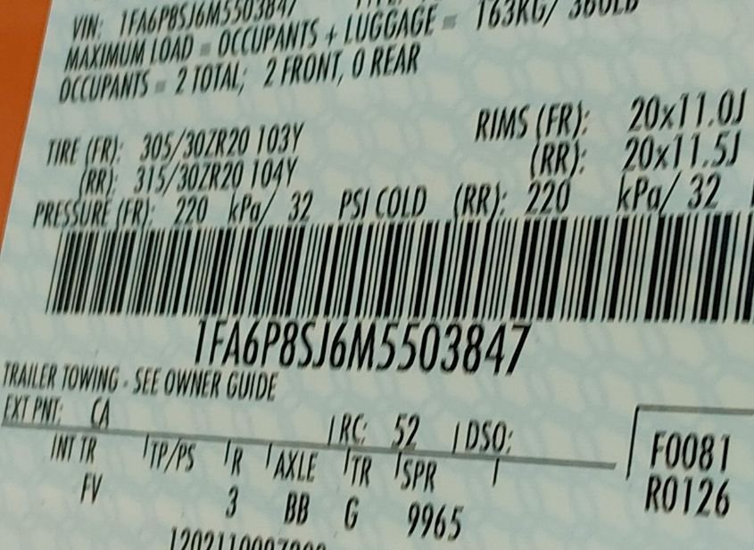 - VIN: 1FA6P8SJ6M5503847
