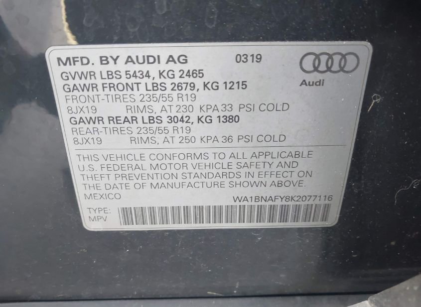 - VIN: WA1BNAFY8K2077116