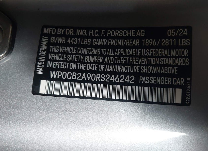 - VIN: WP0CB2A90RS246242