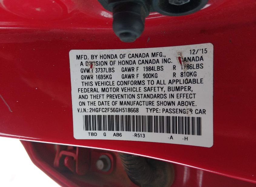 - VIN: 2HGFC2F56GH518668