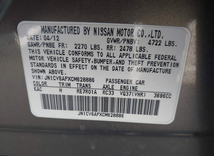- VIN: JN1CV6APXCM628886