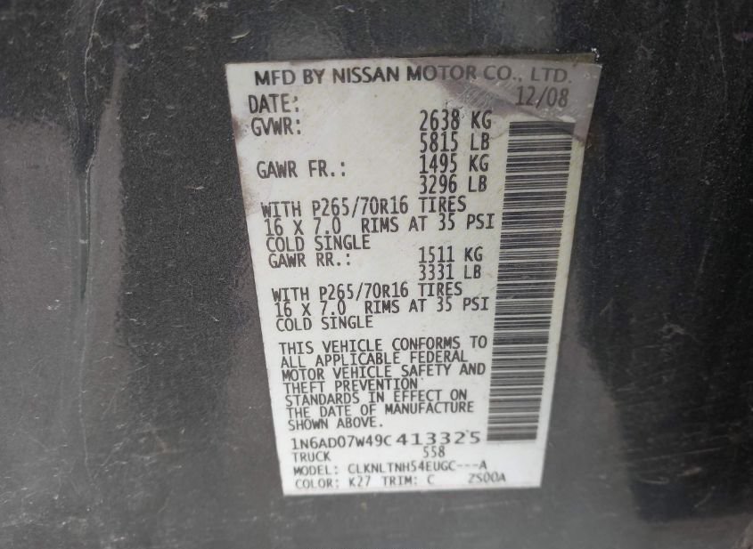 - VIN: 1N6AD07W49C413325