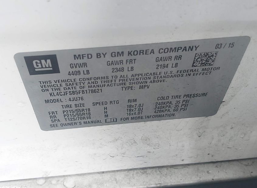 - VIN: KL4CJFSB5FB178621