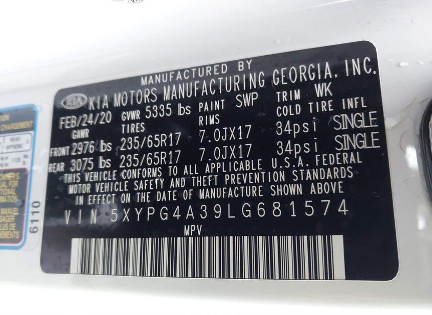 - VIN: 5XYPG4A39LG681574