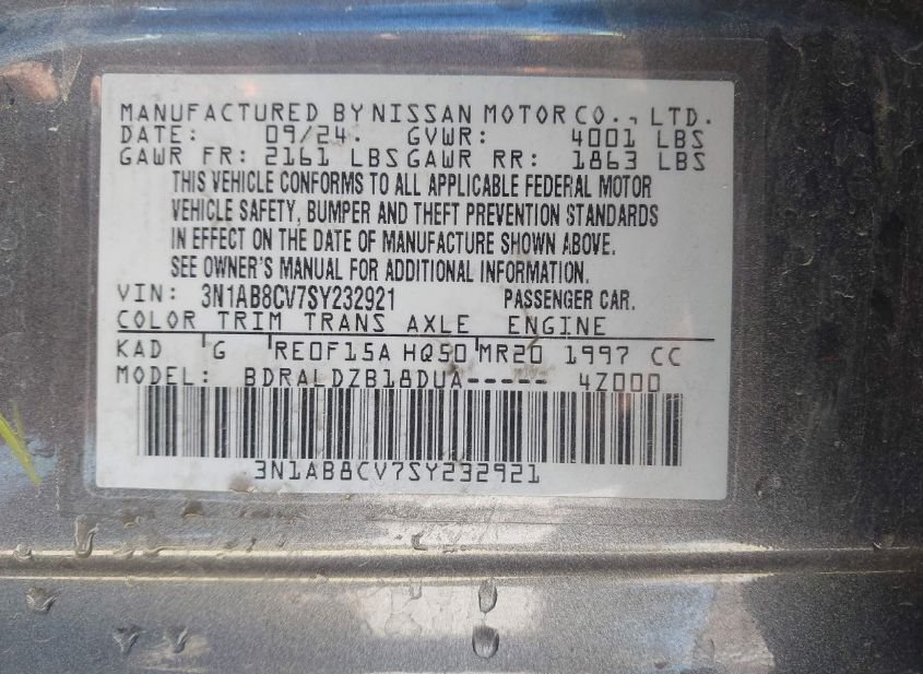 - VIN: 3N1AB8CV7SY232921