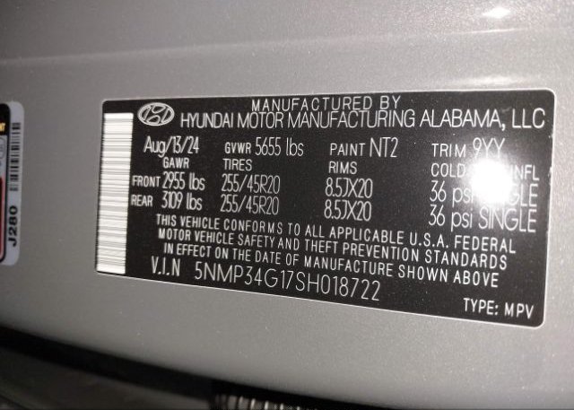 - VIN: 5NMP34G17SH018722