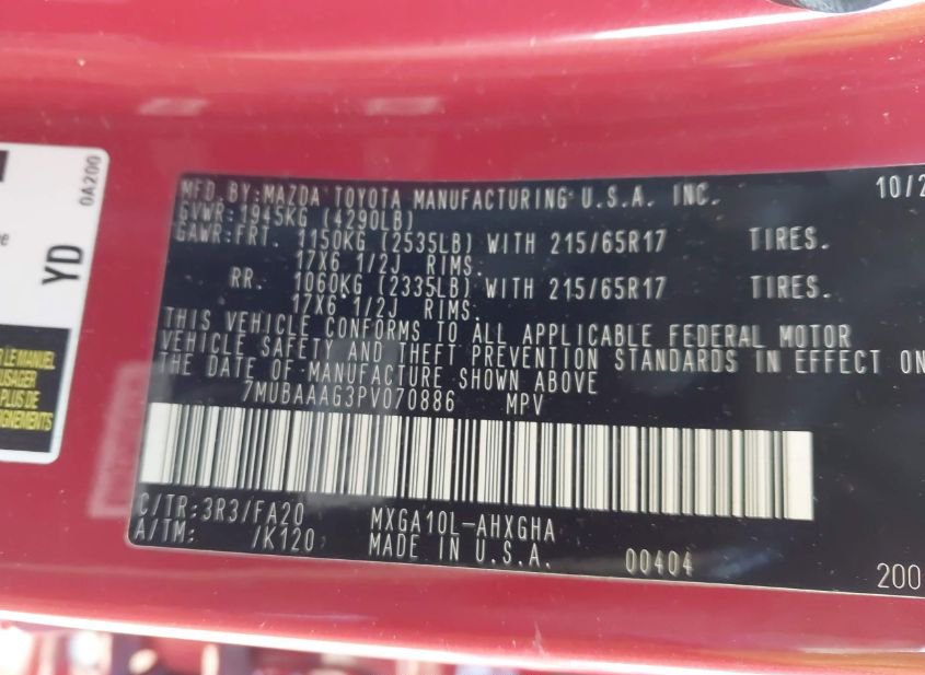 - VIN: 7MUBAAAG3PV070886