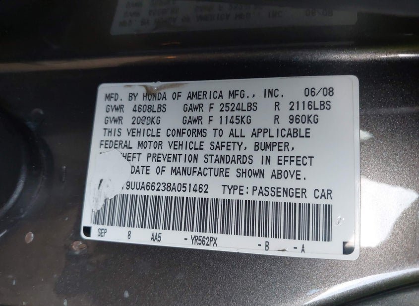 - VIN: 19UUA66238A051462