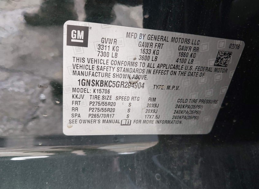 - VIN: 1GNSKBKC5GR294904