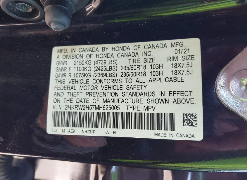 - VIN: 2HKRW2H57MH625005