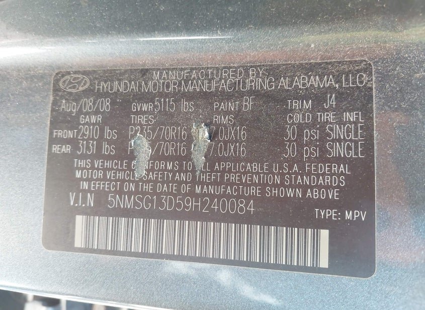 - VIN: 5NMSG13D59H240084