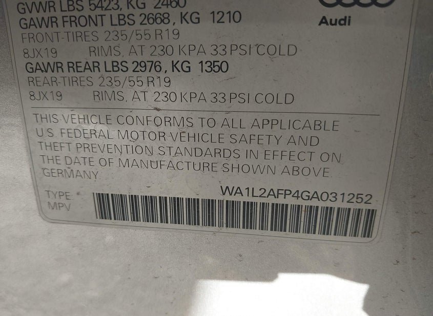 - VIN: WA1L2AFP4GA031252