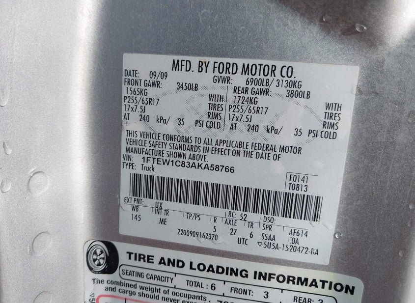 - VIN: 1FTEW1C83AKA58766