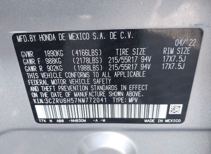 - VIN: 3CZRU6H57NM772041