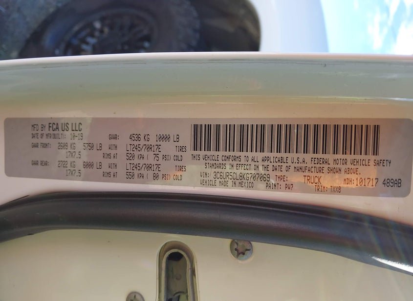 - VIN: 3C6UR5CL8KG707069
