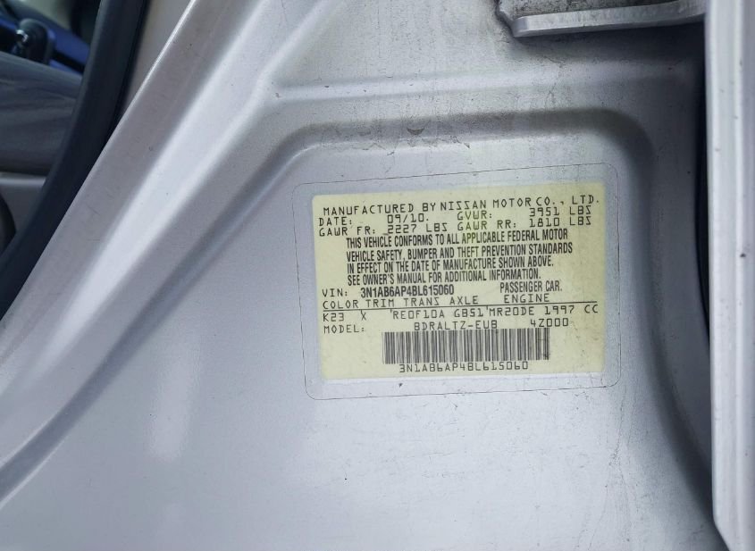 - VIN: 3N1AB6AP4BL615060