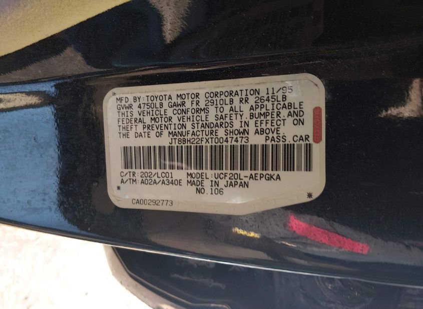 - VIN: JT8BH22FXT0047473