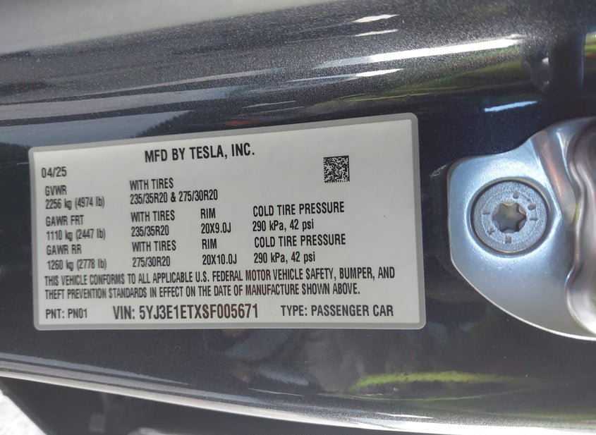 - VIN: 5YJ3E1ETXSF005671