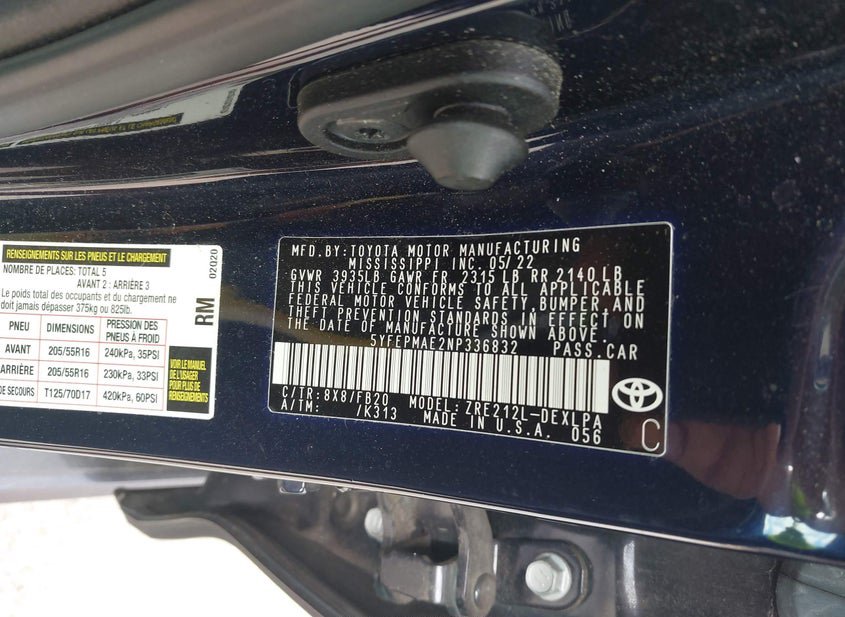 - VIN: 5YFEPMAE2NP336832
