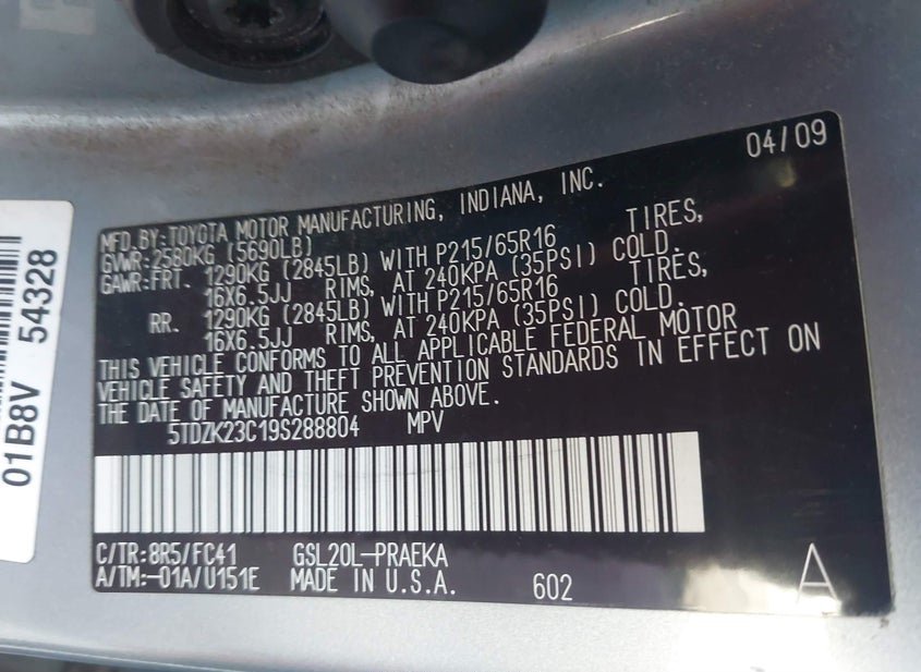- VIN: 5TDZK23C19S288804