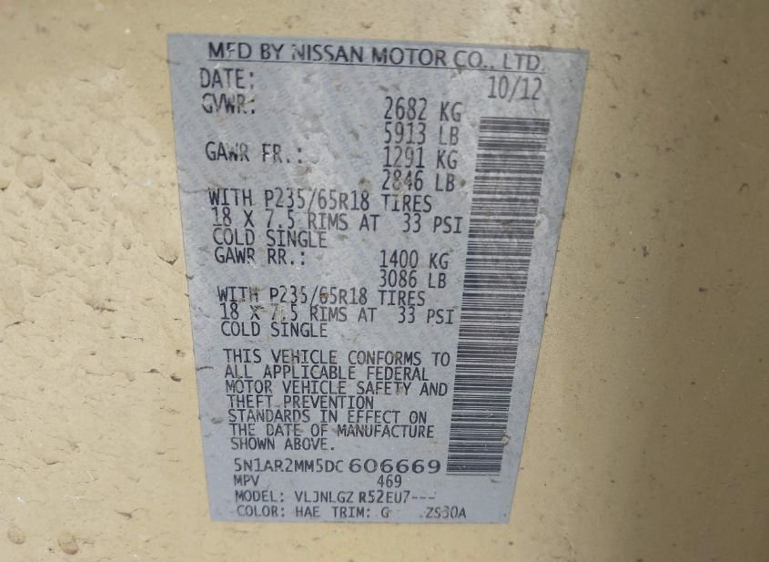 - VIN: 5N1AR2MM5DC606669