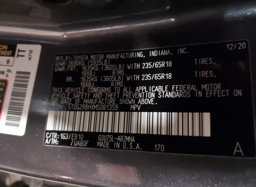 - VIN: 5TDGZRBHXMS081359