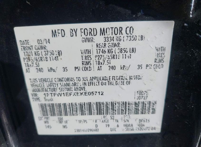 - VIN: 1FTFW1EFXEKE05712